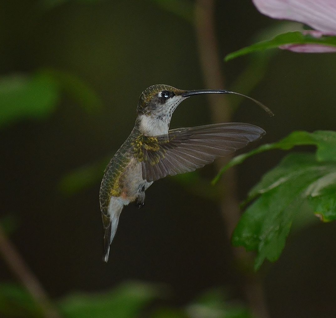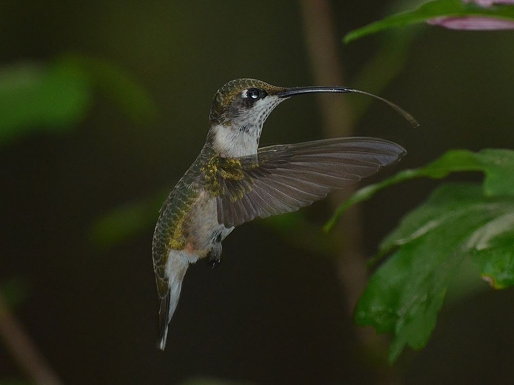 Immature male Ruby throated hummingbird with his tongue sticking out