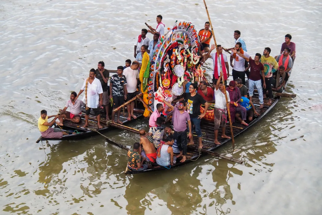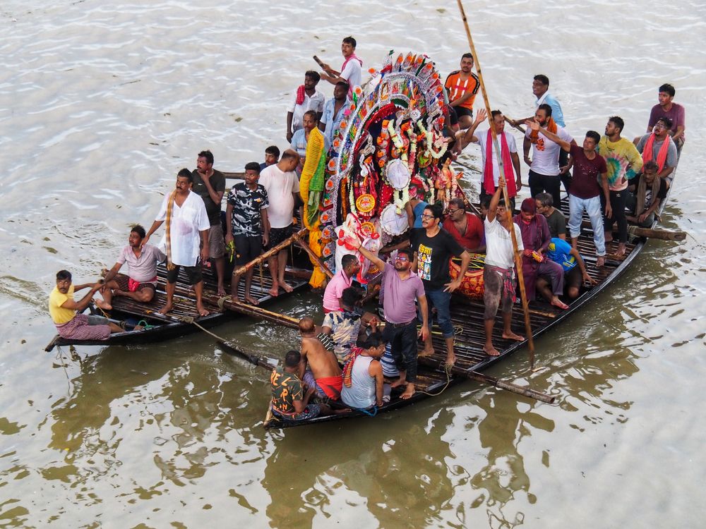 This shot was taken from a bridge to show the immersion procession of Goddess Durga.