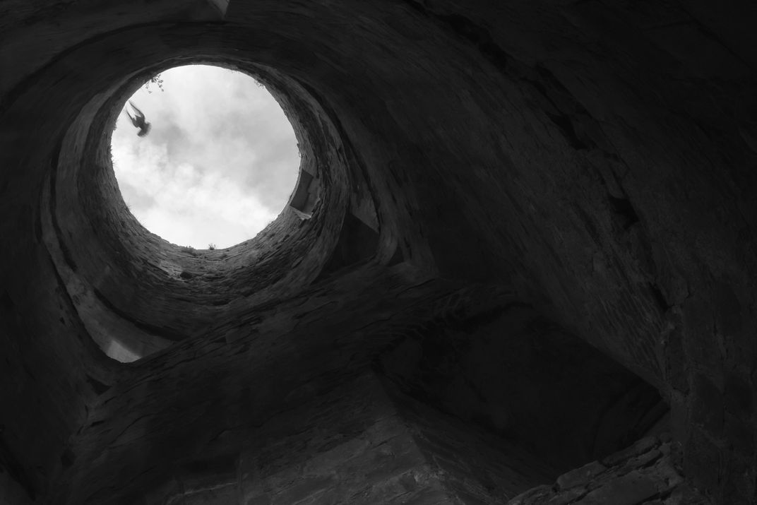 Titchfield Abbey ruins in Hampshire, England, provide numerous photo opportunities. This photo was shot looking up in one of the ruined towers of the building.