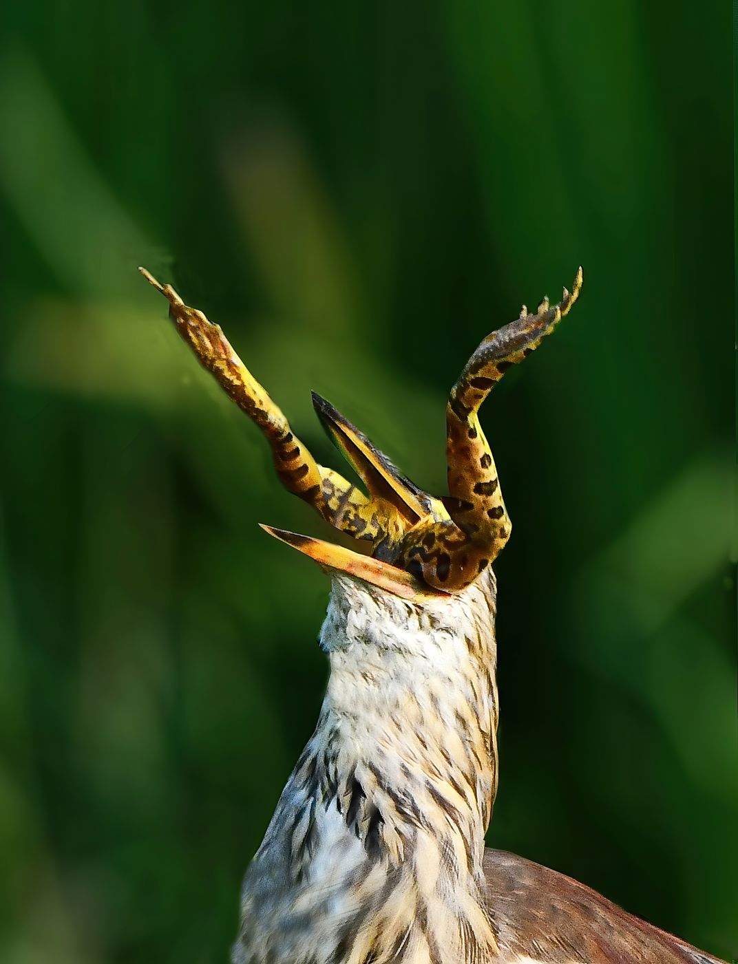 Indian Pond heron swallow big Frog_rajesh Dhungana/Nepal