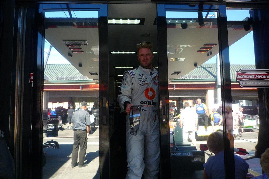 i used to collect race used signed autographed visors aka shields from the driver's helmets here is a Indy driver from England about to give me his shield in Sonoma ca.