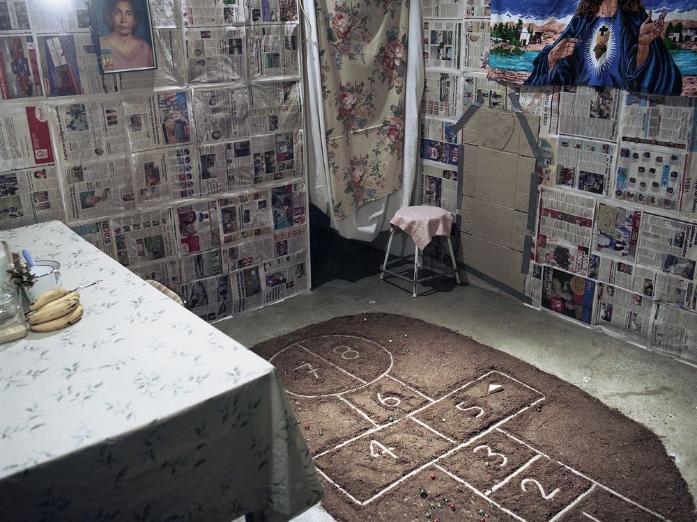 Installation recreating a Central american poor livingroom.