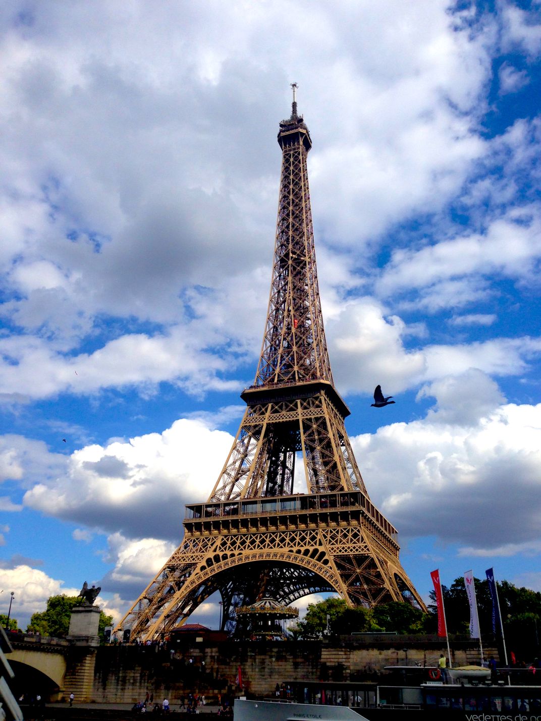 This photo represents a instant time in the travel to Paris. Just then moment a bird was flying towards the Eiffel Tower. With the mobile phone is easy to take a instant time.