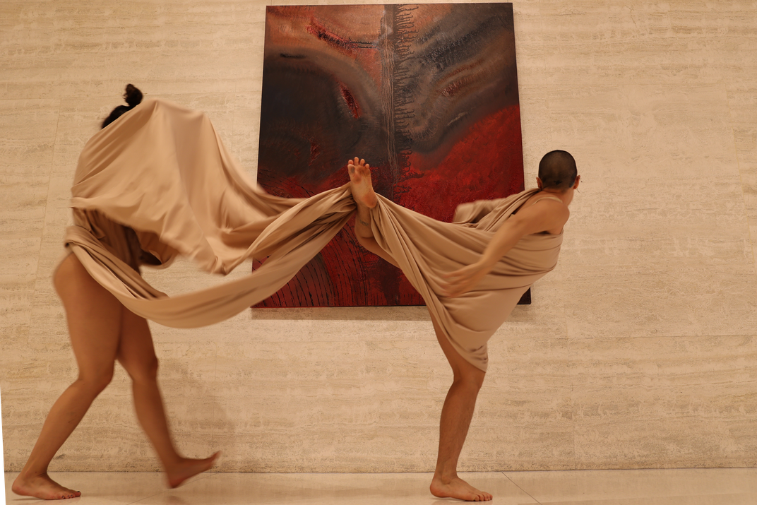 Interworlding was conceptualized and born during the Covid-19 pandemic. It evolved during the unraveling and exploitation of inequality, racism, sexism, and corrupt policies that had been brought directly to the masses. In a time when we were all isolated, technology became our only neighbor. The innovations in media technology and platforms had hastened the distribution of ideas, and brought these previously unmentionable subjects to the forefront of public consciousness and conversation. With the third year of the pandemic approaching, and injustices on all fronts in need of extreme action, society has been branded with the feeling that we may never climb out of this crumbling fate. Blakelee used large-scale canvases and immersive performance media to express a variety of reactions within this unprecedented time; ultimately demanding the viewer to question their role, their participation, and their observations in correlation to the work in front of them. Interworlding tests the tolerance of forced, biological, system alterations that women and planet have endured since genesis. The artist believes that by constructing abstract displays of current events through visual and physical work, rational thought and moral obligations will not only be challenged, but changed. The objectification of color and concept moves the audience into a post-human mindset. The work is intended to prompt the audience to question themselves and their actions. To elicit a feeling of discomfort. To demand a realization that Earth is not man’s slave.