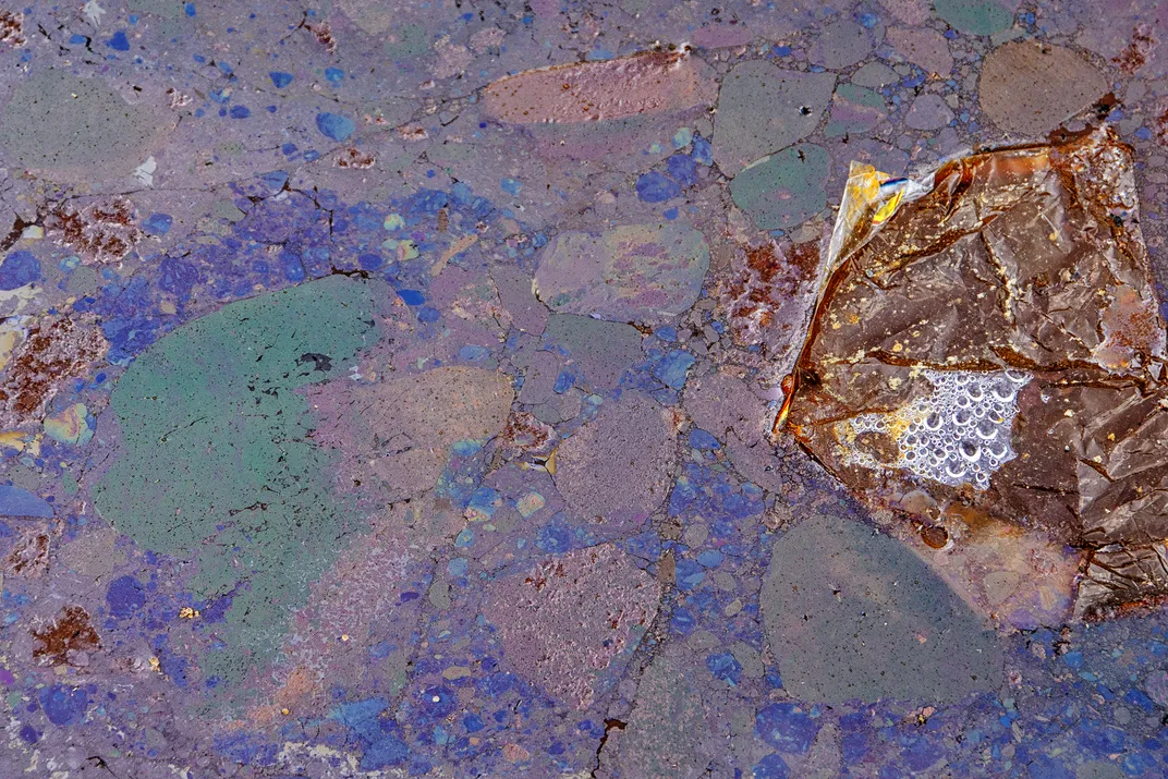 During my photo-journey I captured this shot in Mahakal hill in Jayanti forest. This photo shows the abstract color combination on the stone and leaf on the gathered river inside the forest.