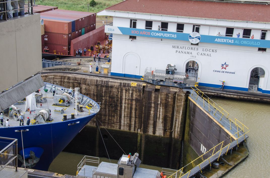 Taken on a trip to Panama in March, photo of a cargo ship entering the first locke heading to America.