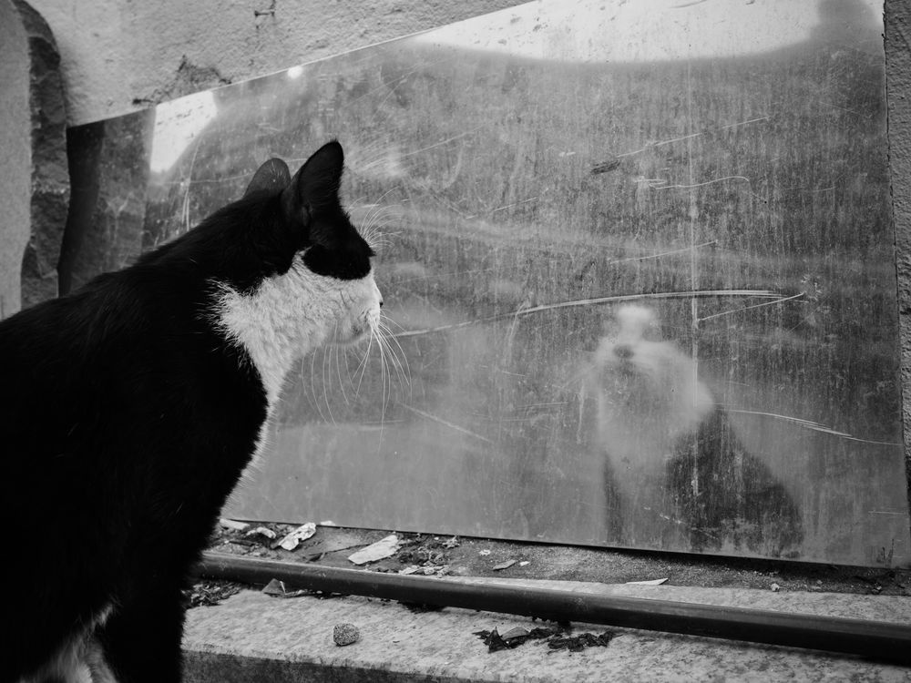 This photo captures a street cat looking into an old and dirty mirror that has been thrown away in an alley in Seoul. The surreal reflection in the mirror provides a striking contrast with reality. It asks the viewer to question what is real and what is not.