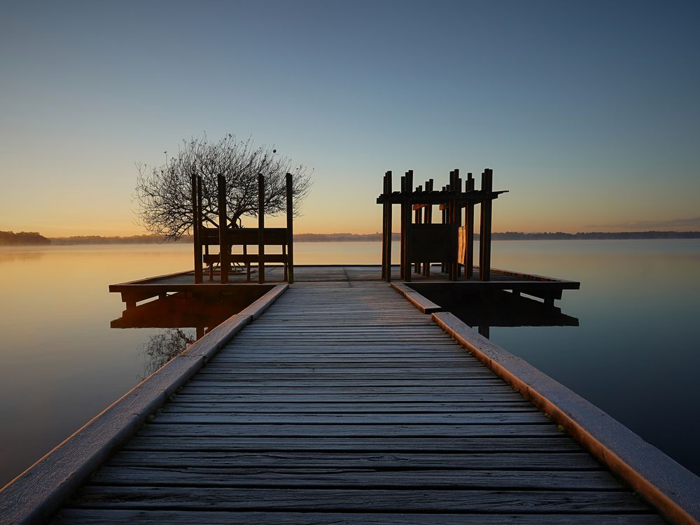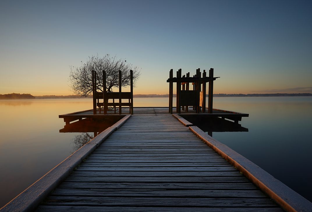 Sunrise on the lake in a freezing morning. the magical moment when the sun appear. the silence and mirror lake.