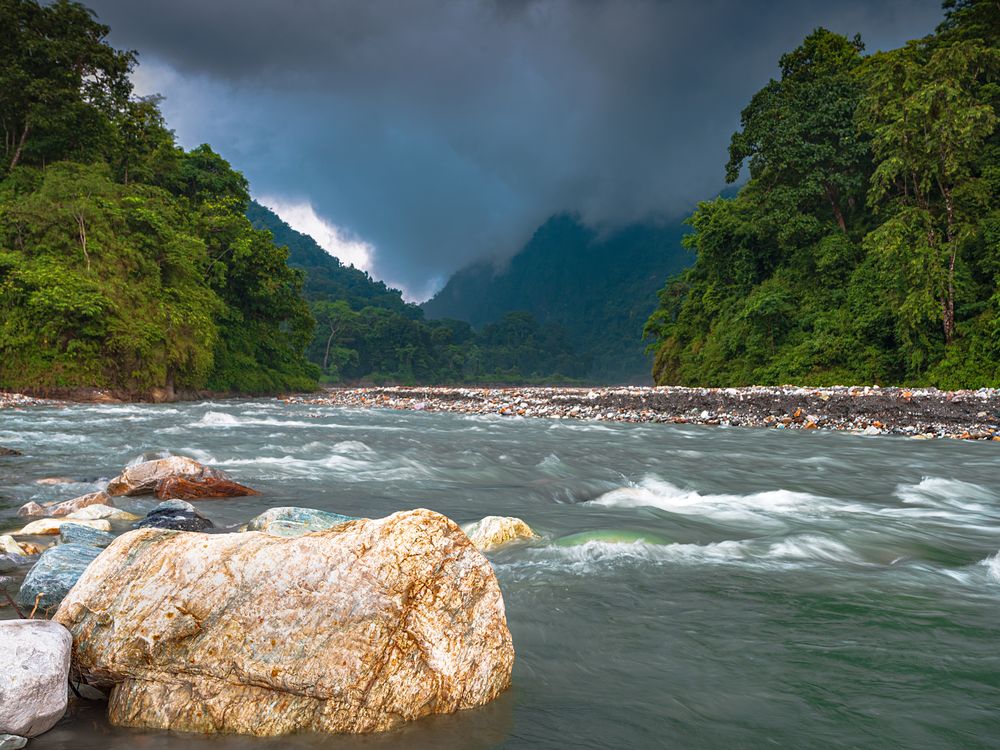 Flowing river coming from a mountain.