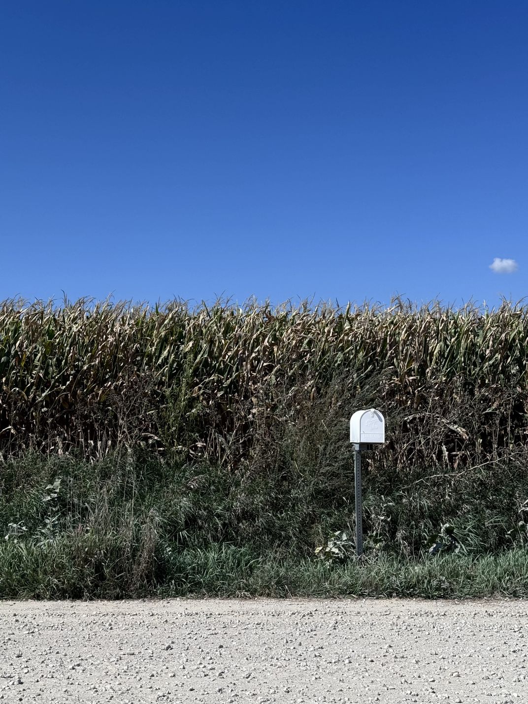 I took a road trip in September 2024 to remember the country where I grew up. After the West I ended in Iowa, among the farms and farmlands I recall so clearly, the gently rolling hills of central-eastern Iowa as you near the Mississippi. While much has changed--the big equipment, the huge fields, the little towns that have gone quiet--this scene and others like it took my breath away, for this is still the heartland, where farmers work hard to produce feed for animals and food for people. There's a simplicity and clarity about life here that this scene reminded me of, and for a moment it was possible to set aside the political implications of any of this and remember that Americans have always been workers, that my ancestors were among those first farmers, who had such hopes for the future and for the country they helped settle and build.