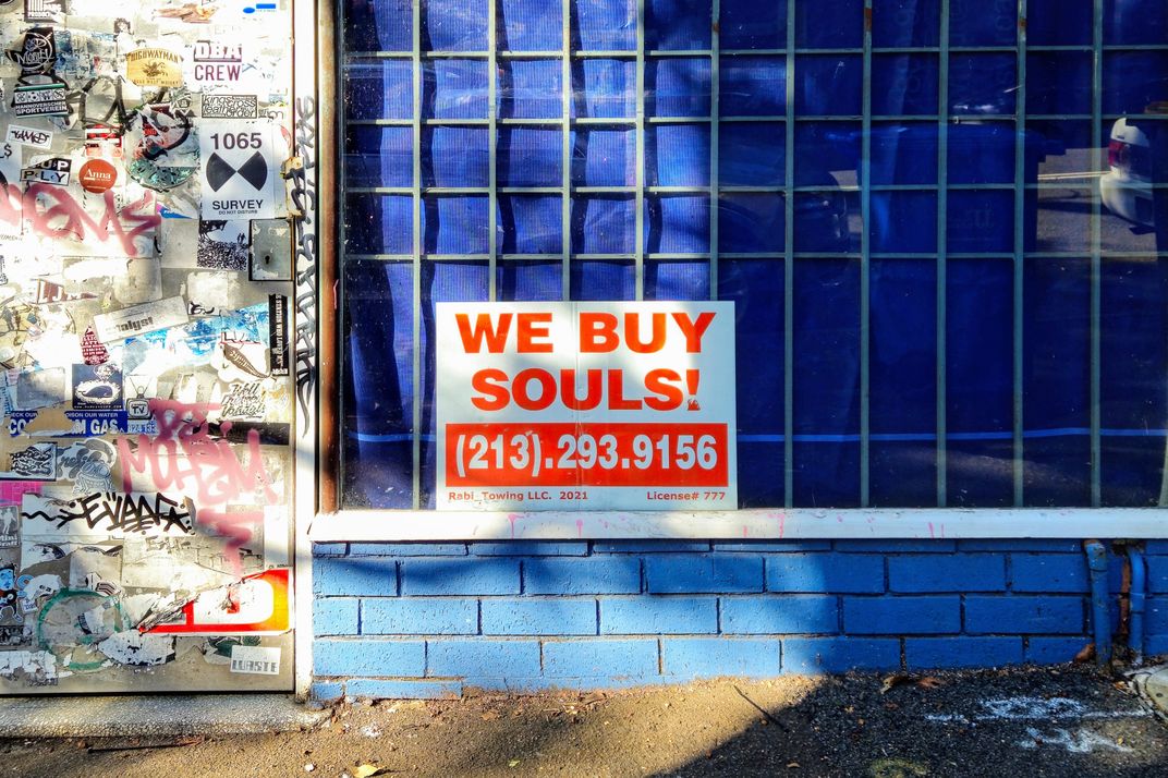 In the heart of Sydney, a wall becomes an accidental gallery. A stark sign declaring ‘We Buy Souls’, placed beside layers of graffiti, shifts from street clutter to unsettling artwork. This photograph captures the raw theatre of the urban environment, where humour, provocation, and decay collide. Here, the ordinary transforms into metaphor: a dialogue about value, identity, and the human spirit, revealed not in a curated gallery but in the spontaneous language of the street.