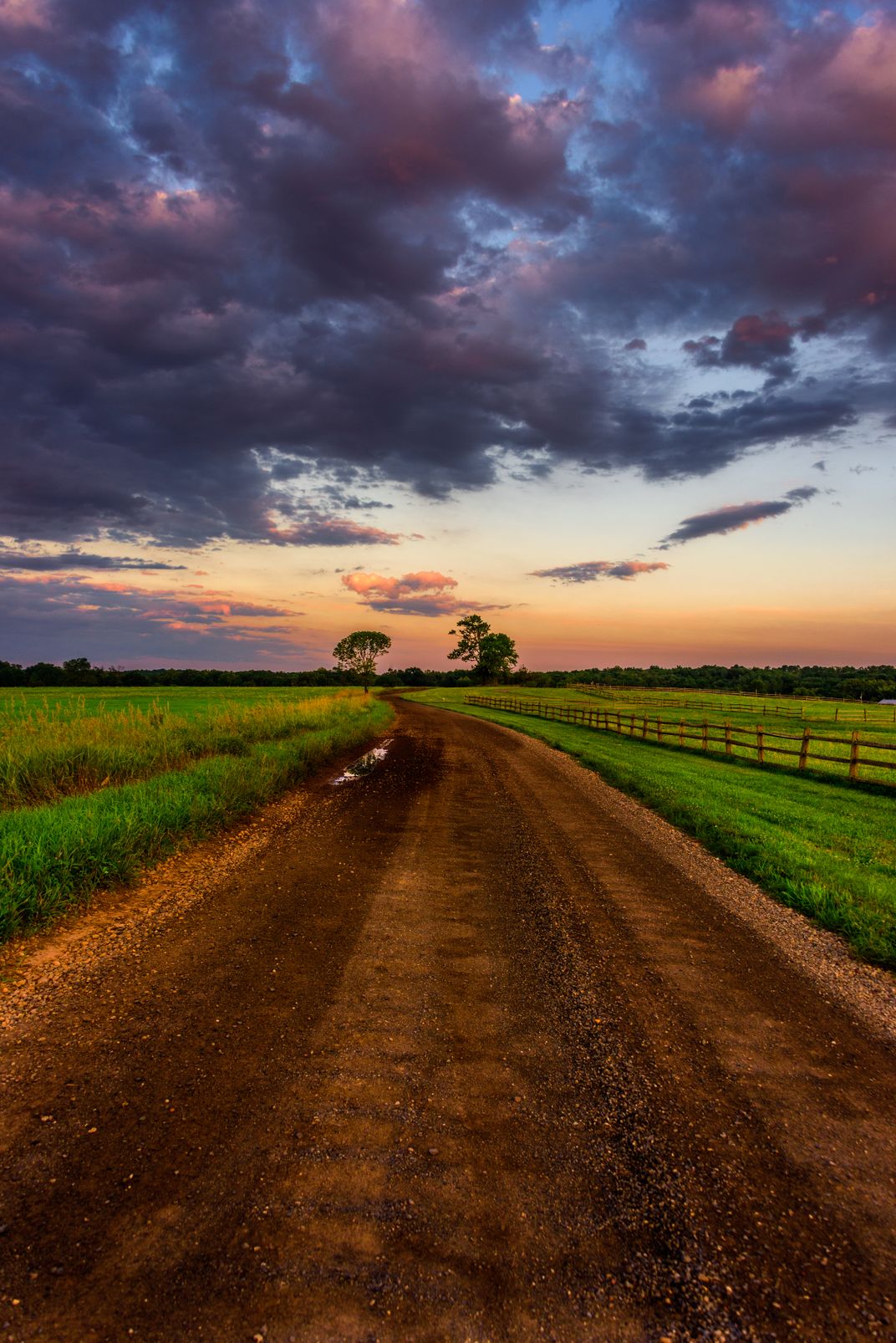 A dirt road in my town at sunset