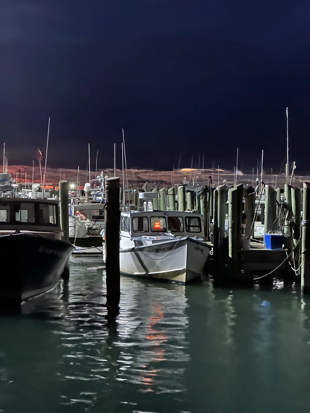 Halloween off the docks of Galilee- red sky at night.