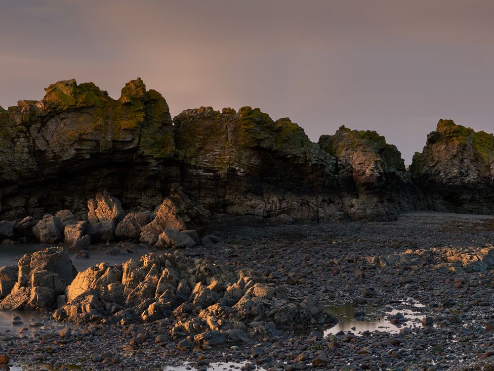 I headed south to photograph Dunure Castle but found my interest being caught by this rock formation on the beach. As the sun set it cast a beautiful light over the rock resulting in this image.
