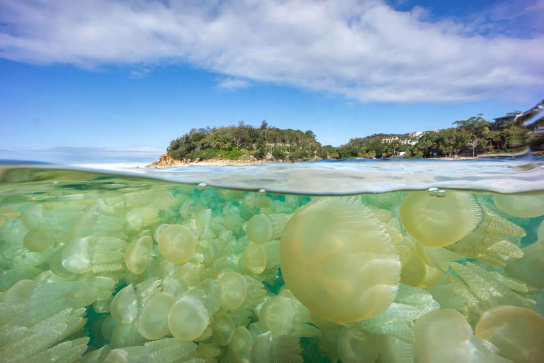 Cabbage Tree Bay Aquatic Reserve is one of few fully protected marine areas around Sydney. Despite its small size, an incredible diversity and density of life has flourished since its introduction 23 years ago. Local and international swimmers, snorkellers and divers enjoy it. A shining light for marine conservation and ecotourism. Occasionally when conditions are right jelly blubber (Catostylus mosaicus ) numbers explode. On this occasion a smack of many thousands was present providing food for some of the other inhabitants.