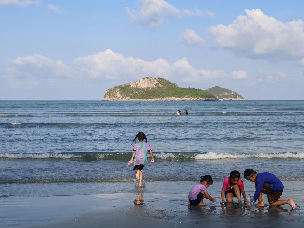 Children play freely by the sea, collecting water and sand under the warm sunlight. Their laughter blends with the sound of gentle waves, showing the pure and simple happiness of childhood. This moment captures life’s everyday beauty — where joy needs nothing more than nature and friendship.