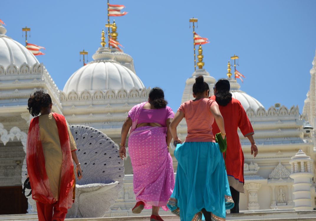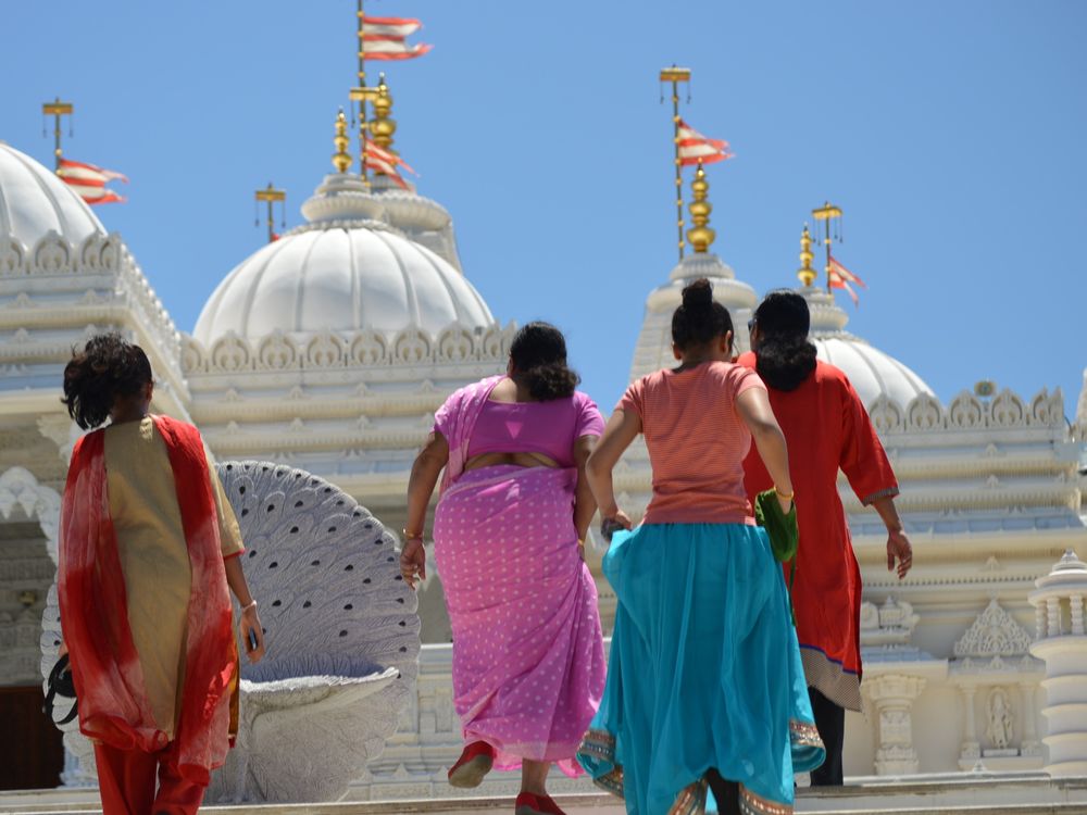 Joy: women on the way to temple. BAPS Shri Swaminarayan Mandir