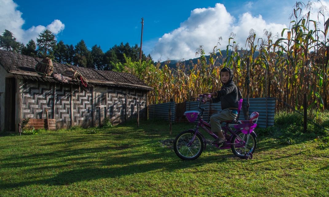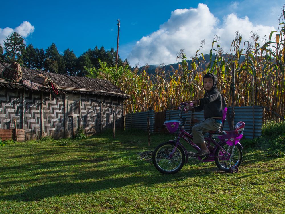 A small boy from a tiny village in the Himalayas takes a ride on a bicycle for the first time. It was his birthday and this was a gift from his uncle.