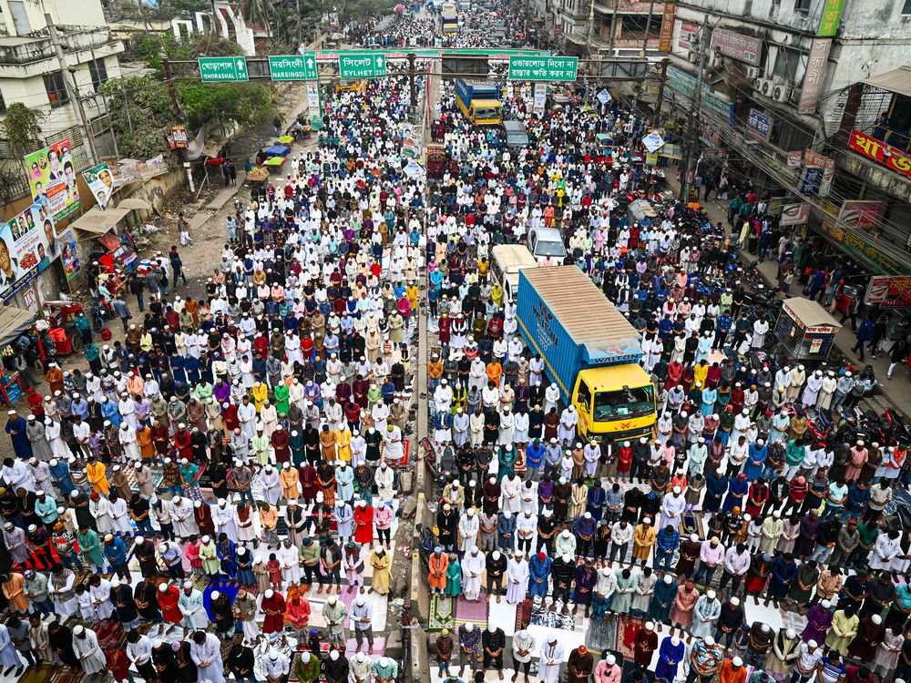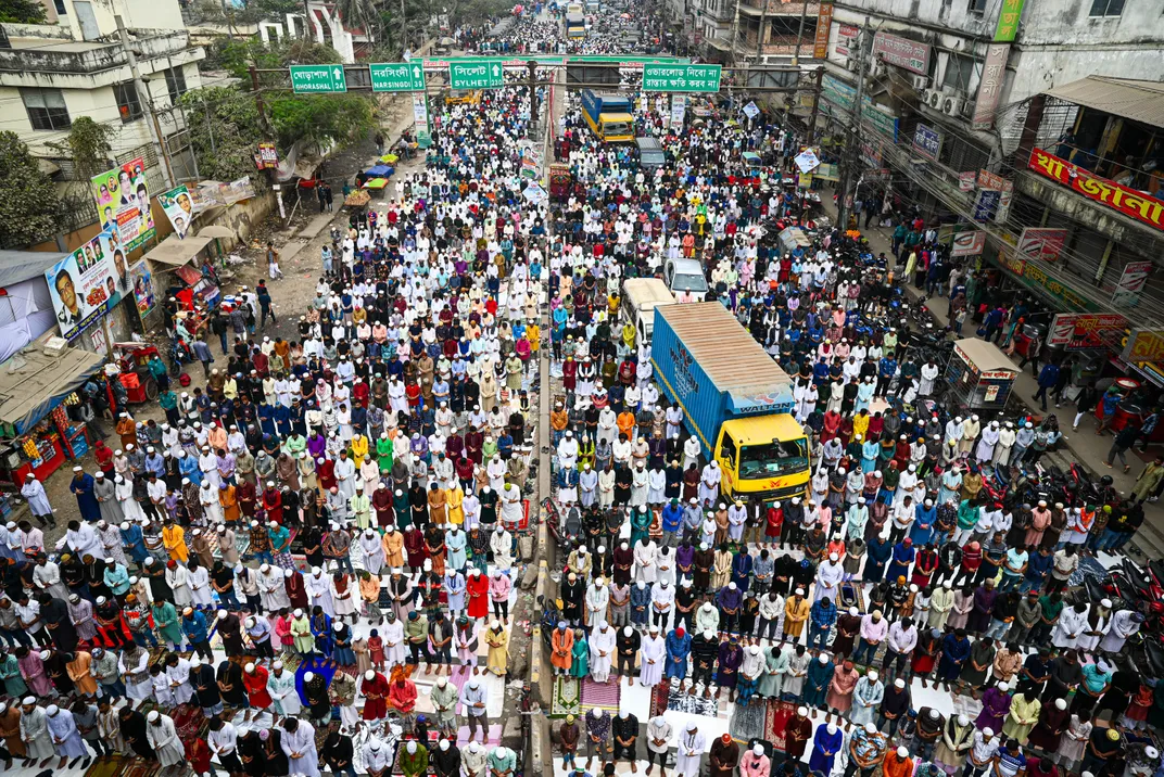 Thousands of Muslims gather along the highway in Tongi, near Dhaka, Bangladesh, to perform the Friday Jummah prayer during Bishwa Ijtema — the second-largest Muslim congregation in the world. The moment reflects the profound unity, devotion, and discipline of faith as worshippers transform the bustling roadway into a vast field of prayer.