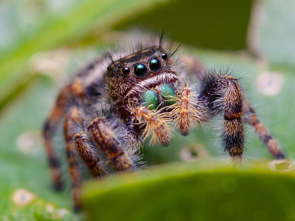 Found this beautiful jumping spider in our backyard garden potato bed.