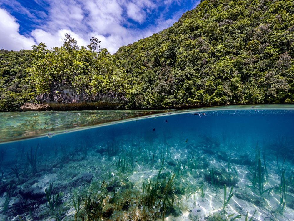 Dive into the captivating intersection of Palau's dual wonderlands, where the jungle islands unveil a terrestrial jungle above and a marine forest below. Beneath the canopy, the jungle breathes life into the islands, while underwater, a seaweed forest sways with the ocean's currents.