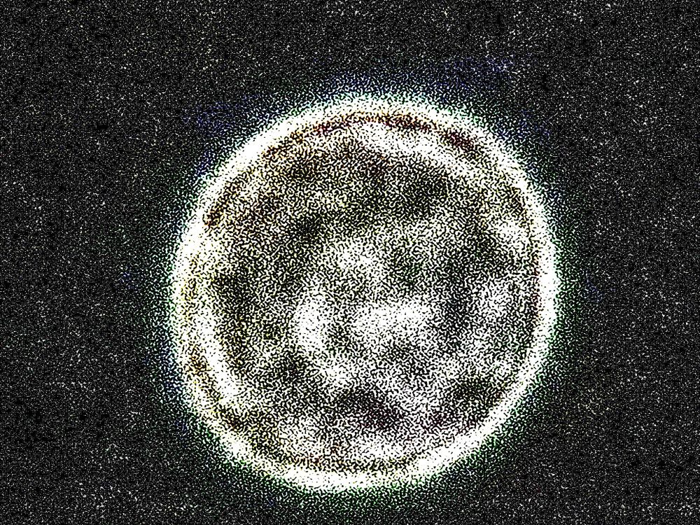 Every planet emits radio waves. Some waves are directed down to the surface of the planet. When the radio wave contacts the surface, it absorbs information about its structure, composition, texture and color. This data is converted into pixels, then reflected back through the atmospheric clouds and haze into space towards earth. Once it's in range, my camera converts the pixel data into an image that I can photograph it. There is a pulsating whole planet image embedded in the radio wave. However, there is no sign of atmospheric clouds or haze in the image. The atmospheric particles are small, and the radio wave wavelength is long so, the particles may not reflect and scatter the radio wave efficiently enough to create an image. So, what is left is an unobstructed surface view of planet Jupiter.