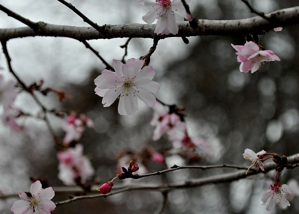 Just on a daily walk noticed this peach blossoms, I loved the color combination of the pink with grayish background.