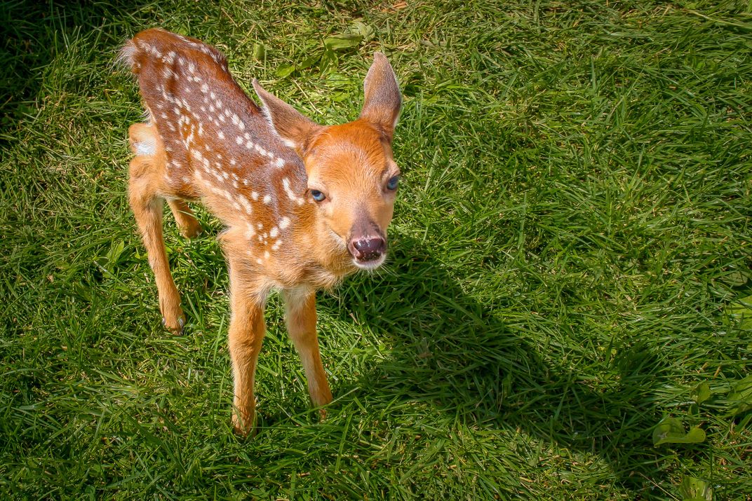 This photo shows a newborn fawn who happened to stop by while I was out taking photos