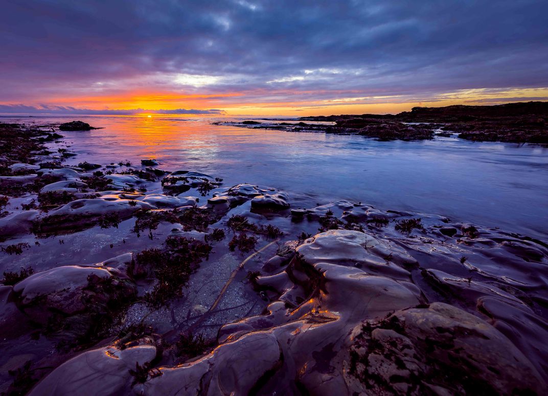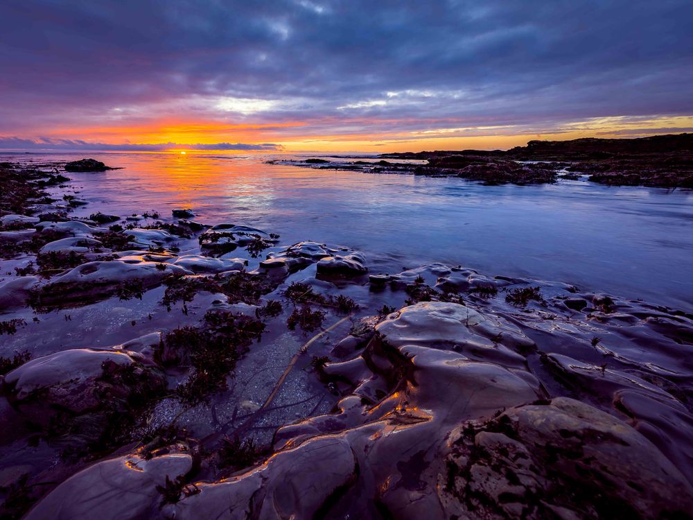 It had been a gray and drab and foggy few days on the California coast. It didn't even look like we would see the sun but there was a little pocket of light off the coast. And as the sun kissed the sea the color blast was incredible.