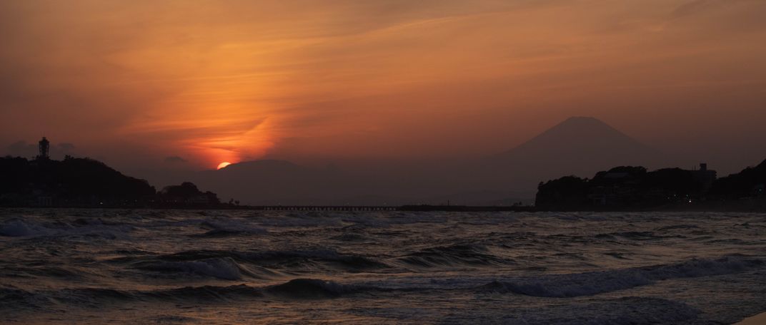 I was traveling at Kamakura, a coastal city in Japan, I sat on the beach for hours waiting for a sunset. The weather was great that day. The amount of cloud is just enough to make the shot not that boring.