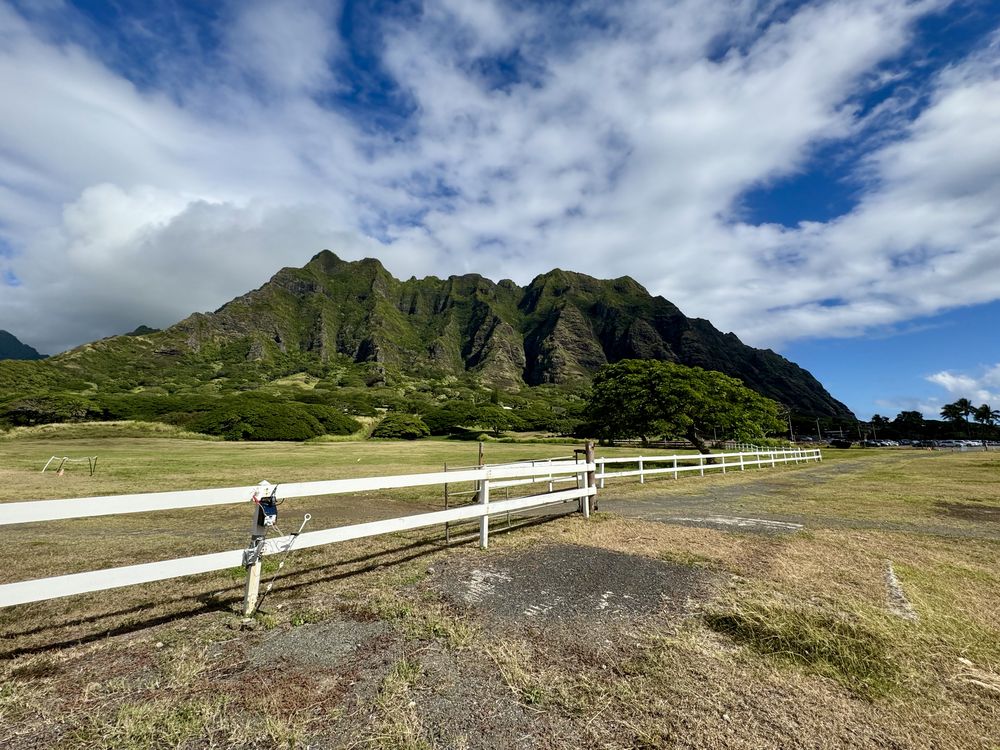 It was my first trip to Hawaii and we were just driving through O'ahu when we saw this mountain out of nowhere. Everything else had been pretty flat before that so it seemed to come out of nowhere.