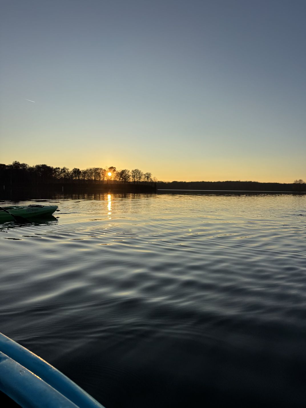 This is a lake near my home that I often visit. The water was the most tranquil I have ever seen it when I took this photo. The water and the sunset combined made a beautiful evening!