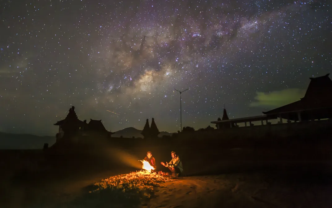 The tenggerese were keeping themselves warm at the foot of the active Volcano Mount Bromo on the Island of Java, the Hindu Temple Pura Luhur Poten.