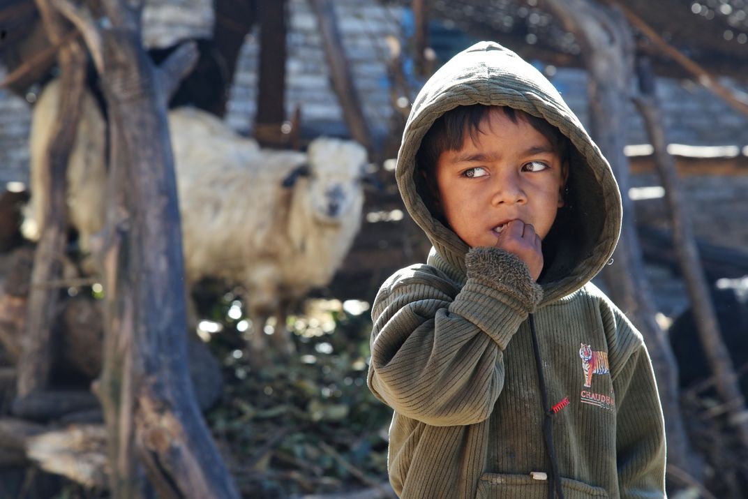 A local child in Gurja Khani village, Nepal. Gurja Khani is a predominantly Chhantyal village located in a secluded valley at the foot of Gurja Himal range, separated by mountain passes from the rest of the world, and only accessible on foot. Its isolation has allowed it to preserve total authenticity. While electricity and mobile connection are already available in Gurja Khani, not a single ancient house has so far been replaced with a modern structure.