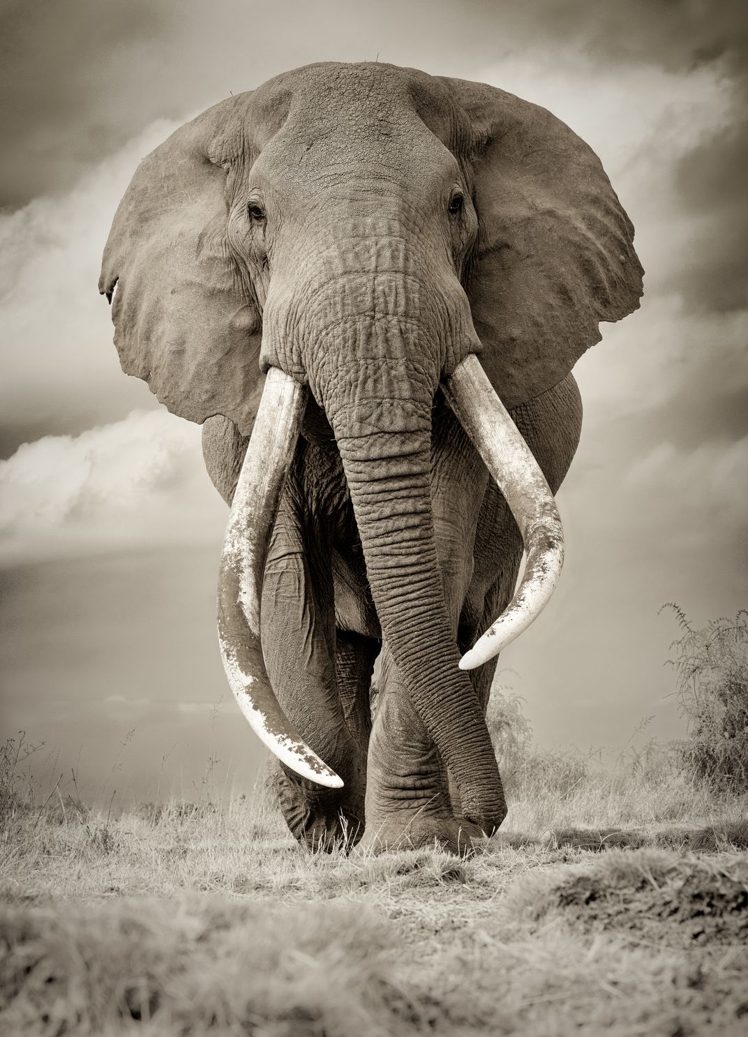 Portraits of Craig, perhaps the most famous Elephant in the world currently. There are estimated around only 30 to 40 super tuskers left in the wild today. Super tuskers are defined as individuals whose tusks weigh more than 100 pounds each. These impressive tusks have proved to be their undoing in the last couple of centuries. Large tusks are what made them the prime targets for trophy hunters and the illegal ivory trade. Large tusks, if not for human intervention were supposed to be the desired trait and passed on in the gene pool more successfully. However, the reverse has transpired. Individuals with large tusks have been selectively targeted and taken out from the gene pool. Super tuskers like Craig who are more easily and regularly seen by tourists are a vital component and a true ambassador for their kind. Media famous individuals like him provide and anchor for all stake holders, policy makers and the larger audience. They help immensely in shining a light on the cause of their habitat and the species. Providing consistent reminders to humankind of what could have been or what should have been.