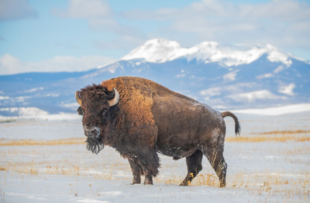 One lone bison, snow grazing on the prairie, just east of the Rocky Mountains in Colorado. Even if you have more than a foot of snow on the ground, they can still dig through and find it. Oblivious to my presence he foraged about for over an hour, head down, as I sat in the snow in sub-freezing temperatures waiting for him to lift up his head. It took an hour, but he finally gave me an iconic Americana shot.
