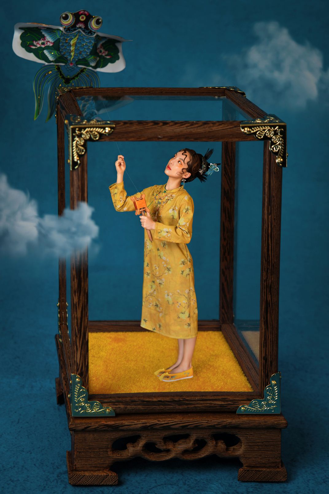 Kite flying in the cage