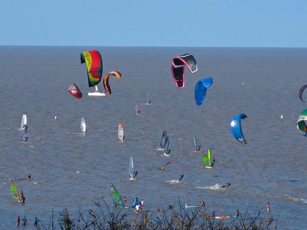 Kite-surfing in the river on a summer Sunday