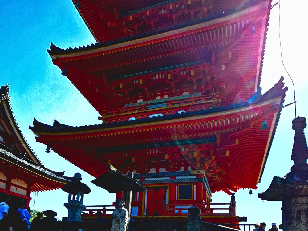 Taken in the mid-morning on my way to go up to see the Kiyomizu-dera Temple.it is a photo of a wooden tasōtō which is at the beginning of the Temple.