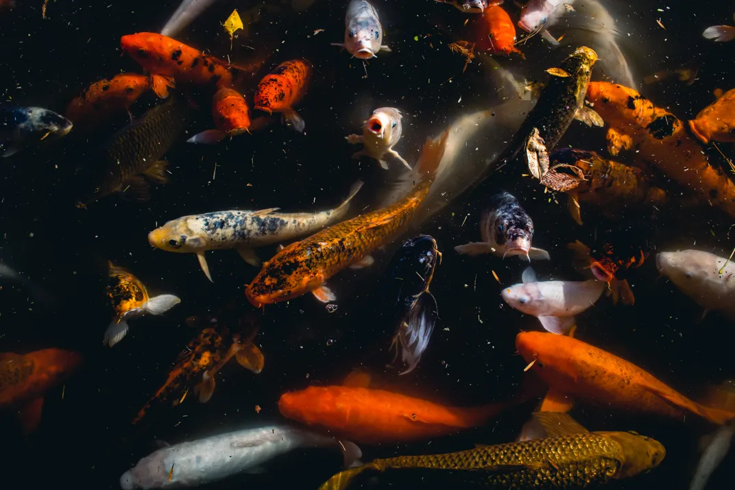 Koi gathering in a pond