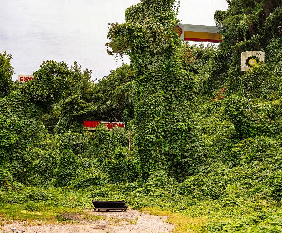 They say you can watch kudzu grow. In this case, someone decided it was worthy of a futon outdoor room. It can grow one inch an hour. In the Carbonized Era, the edges of every habitable zone will be consumed by excessive growth. Maintenance machinery cannot be used due to its carbon emissions, and the carbon sequestration of every available square inch will be a national priority.