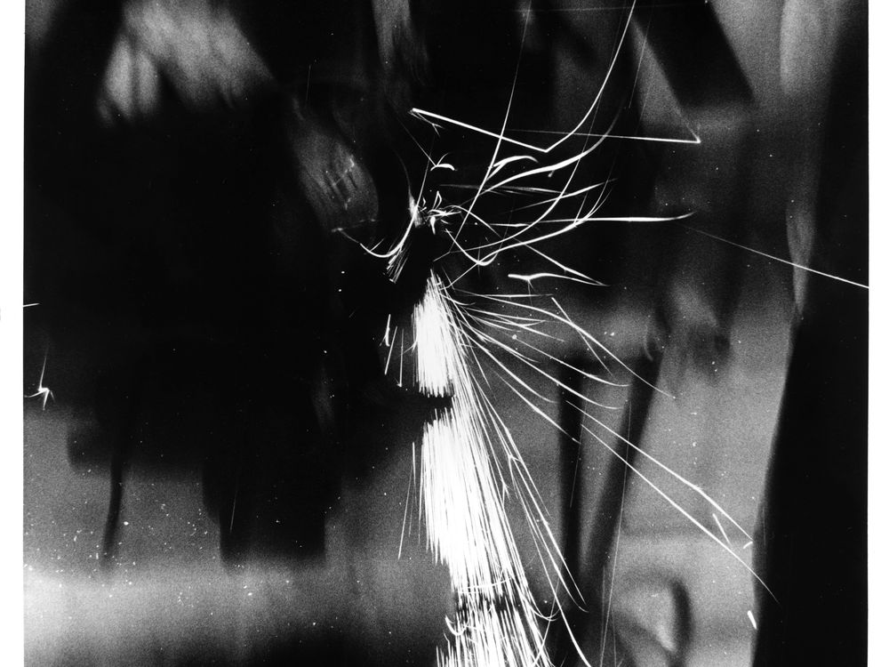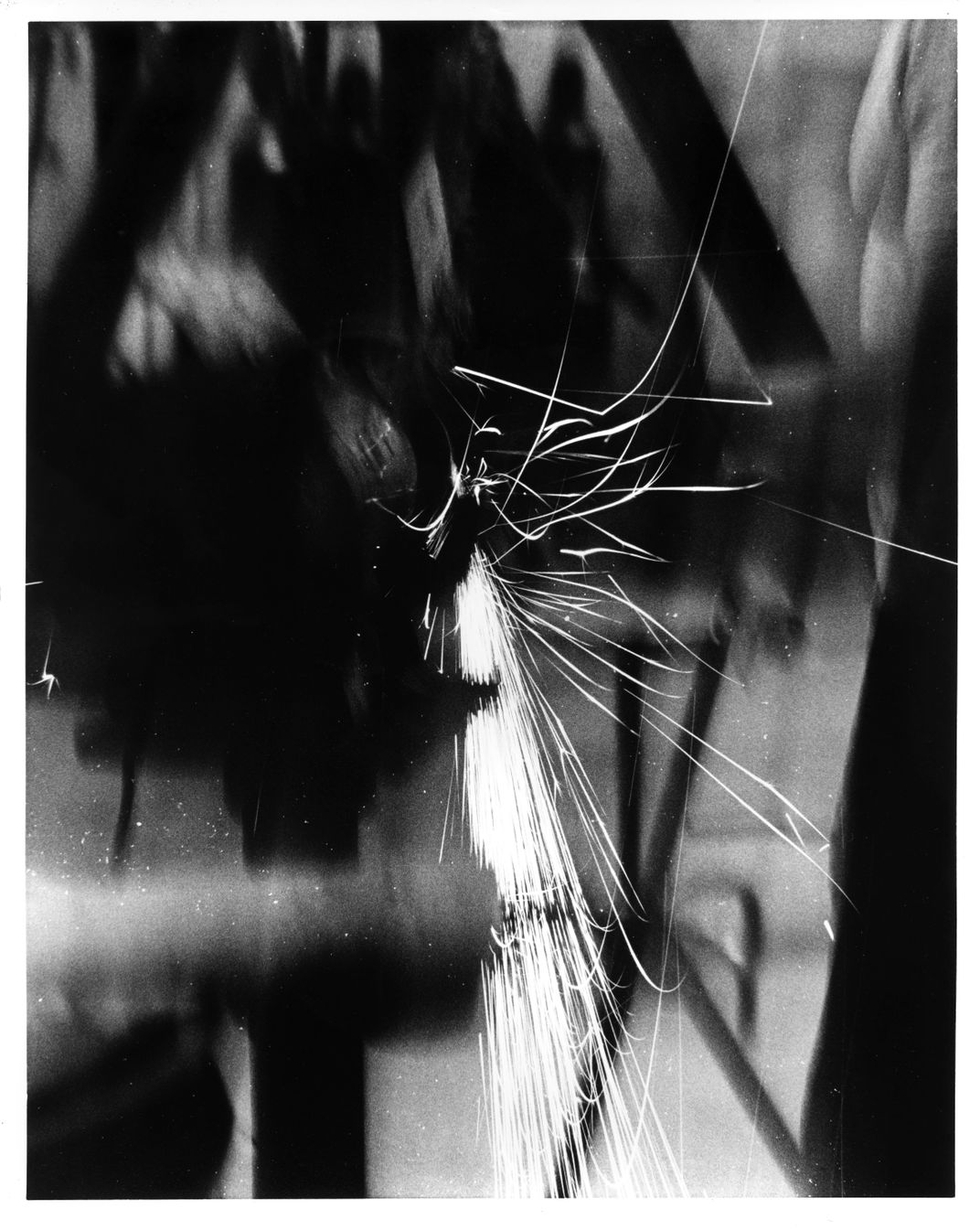 I was browsing through my communal studio and saw my professor, Kyle, working in the metal shop. The sparks coming from the metal equipment drew my eye in immediately.