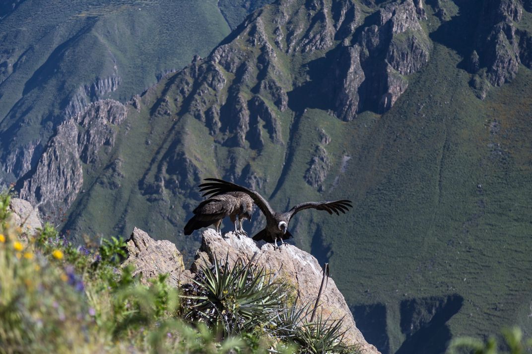 A family of condors in the Valley of Colca, Peru.