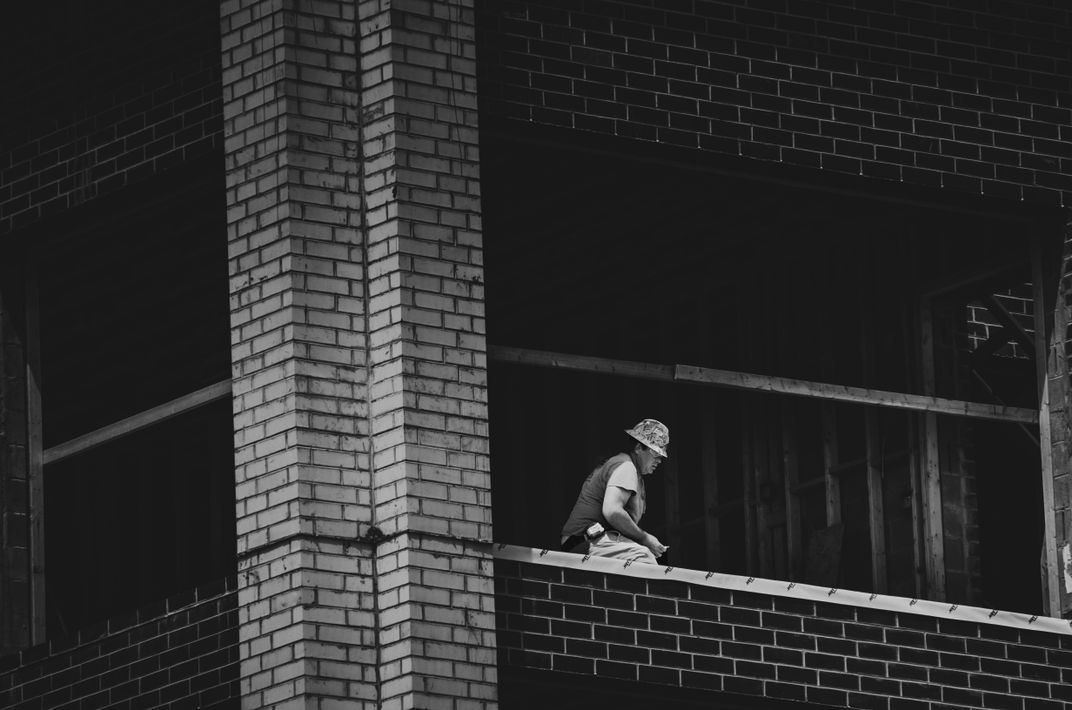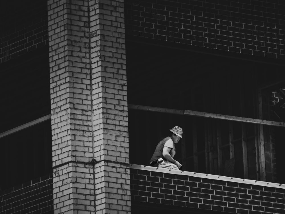 A construction worker works inside of an unfinished building by himself. It wasn't the job that caught my attention; this grabbed my attention because the poetry of it. How many times have we found ourselves building alone? Creating something out of nothing with nobody beside us? And how many times do the things we build end up isolating us, until we're only defined by our output and not by who we are?