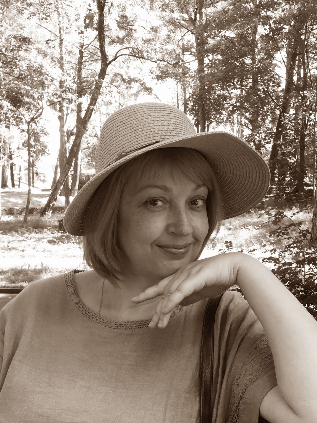 The picture shows lady in the park