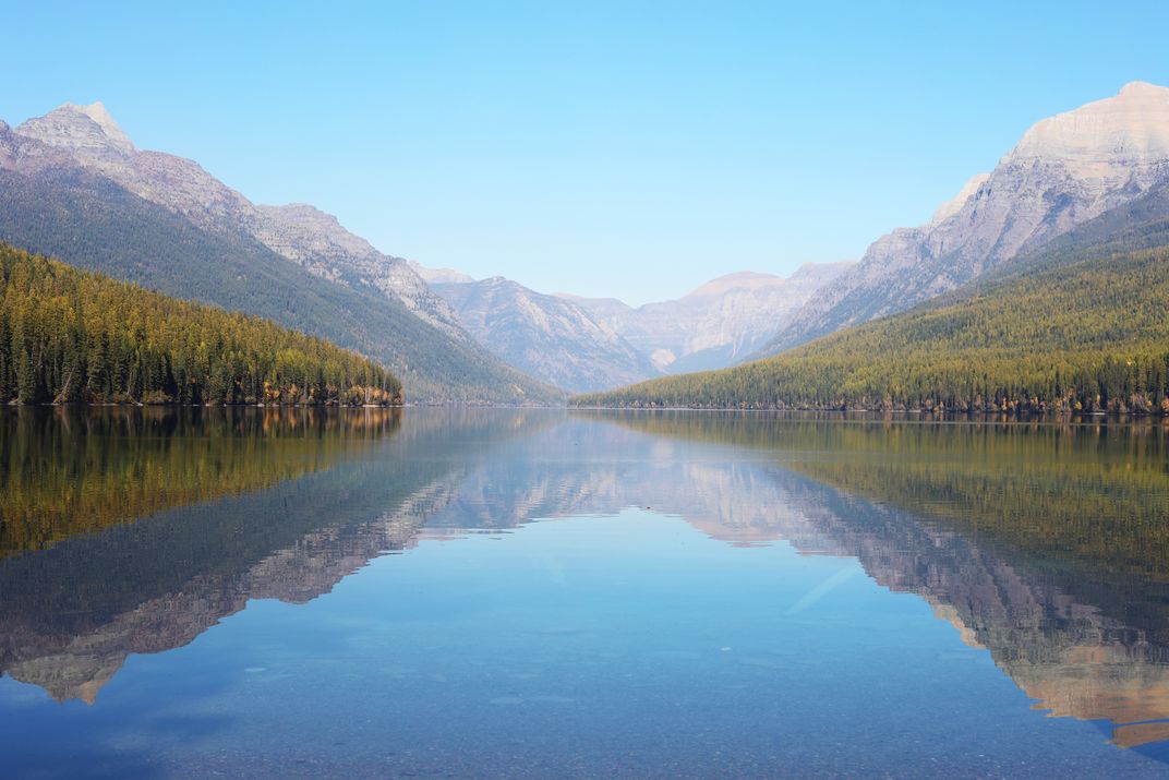 Bowman Lake is famous for its incredibly tranquil water, whose stillness is the product of its location in a deep valley sandwiched between the Rockies' Numa and Cerulean ridges. The lake is seven miles long and stretches so far back into the Livingston Range that it seems to trap these ancient mountains in its glassy surface. The result is a near-perfect illusion: a parallel universe that ripples in the wind.