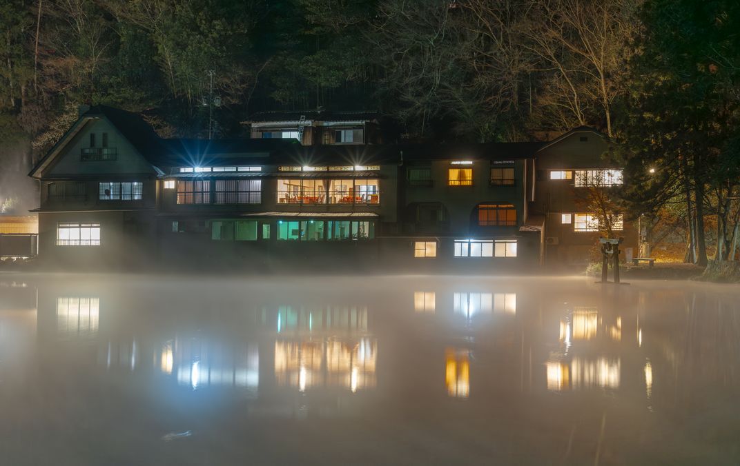 With both fresh water and hot spring water flowing into the lake, the water temperature of Lake Kinrin in Japan is warm throughout the year. It is magical to see the steam rising from its surface on a cold night.
