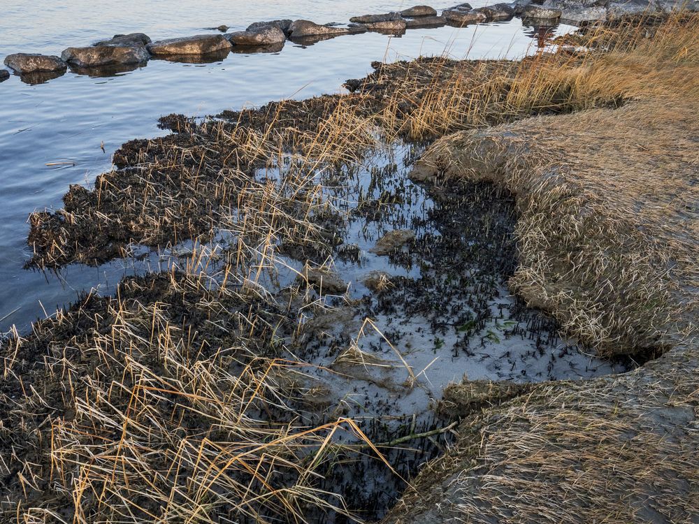 A man navigates a jetty on Maryland's Eastern Shore.