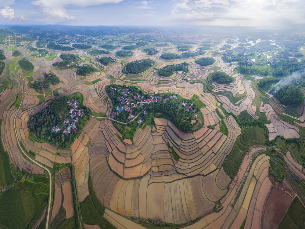 The panorama of San Vien Field in Vietnam looks as beautiful as a painting during the new rice season.