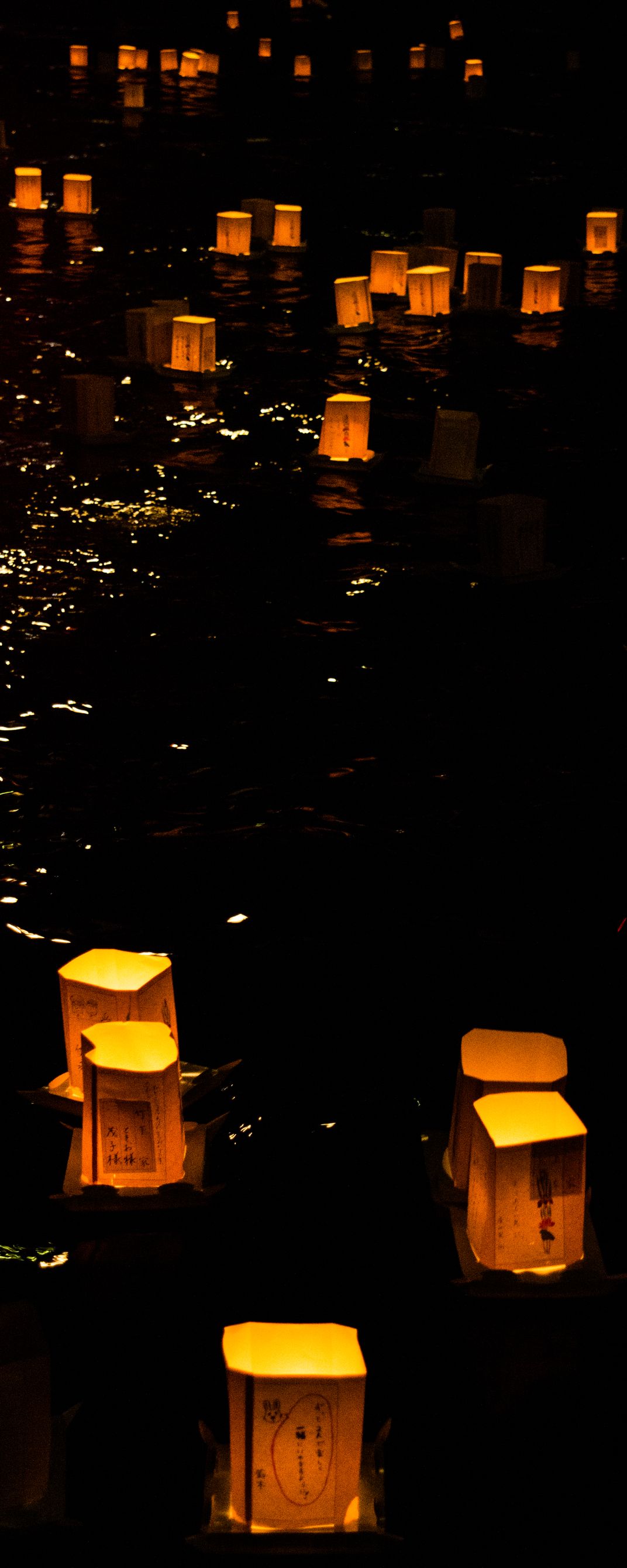 Toro nagashi is a long-held Japanese tradition where lanterns are released into rivers to guide the spirits of ancestors. This one night event can see over 2,500 laterns float peacefully down the river. The river is lined with thousands of people witnessing and participating in this event. The warm glow of the lanterns was wonderful sight.